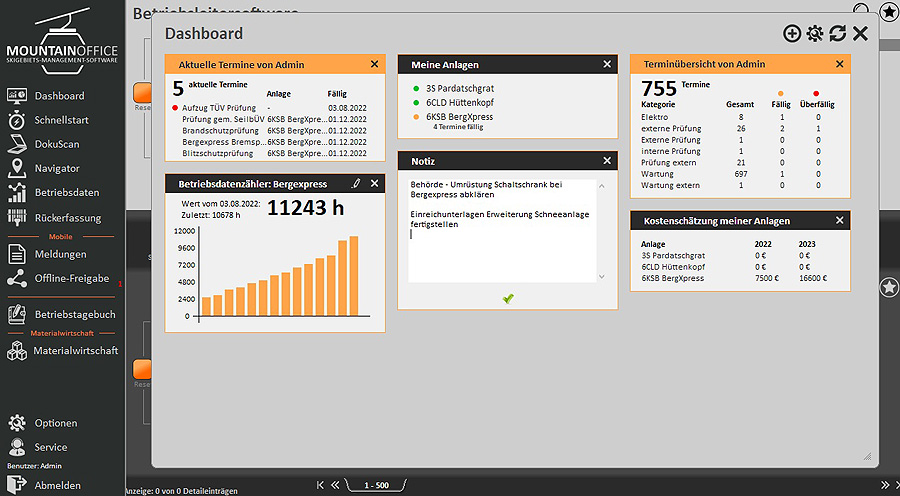 Die Skigebiets-Management Software unterstützt Geschäftsführer, Betriebsleiter, Maschinisten, Stationsbedienstete, Pistenchefs, Schneimeister und viele andere Mitarbeiten von Bergbahnen bei der Verwaltung ihrer Aufgaben.